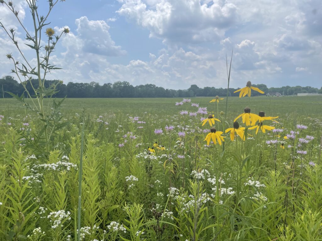 Sights: Ephemeral spring flowers, sycamore trees, birding opportunities, meadows, stand of CCC-planted pine trees, paw paw trees, forested area, plus park features including Cruit House (log-framed house), Fetter-Hood Barn, Stover Windmill, pollinator garden, pond